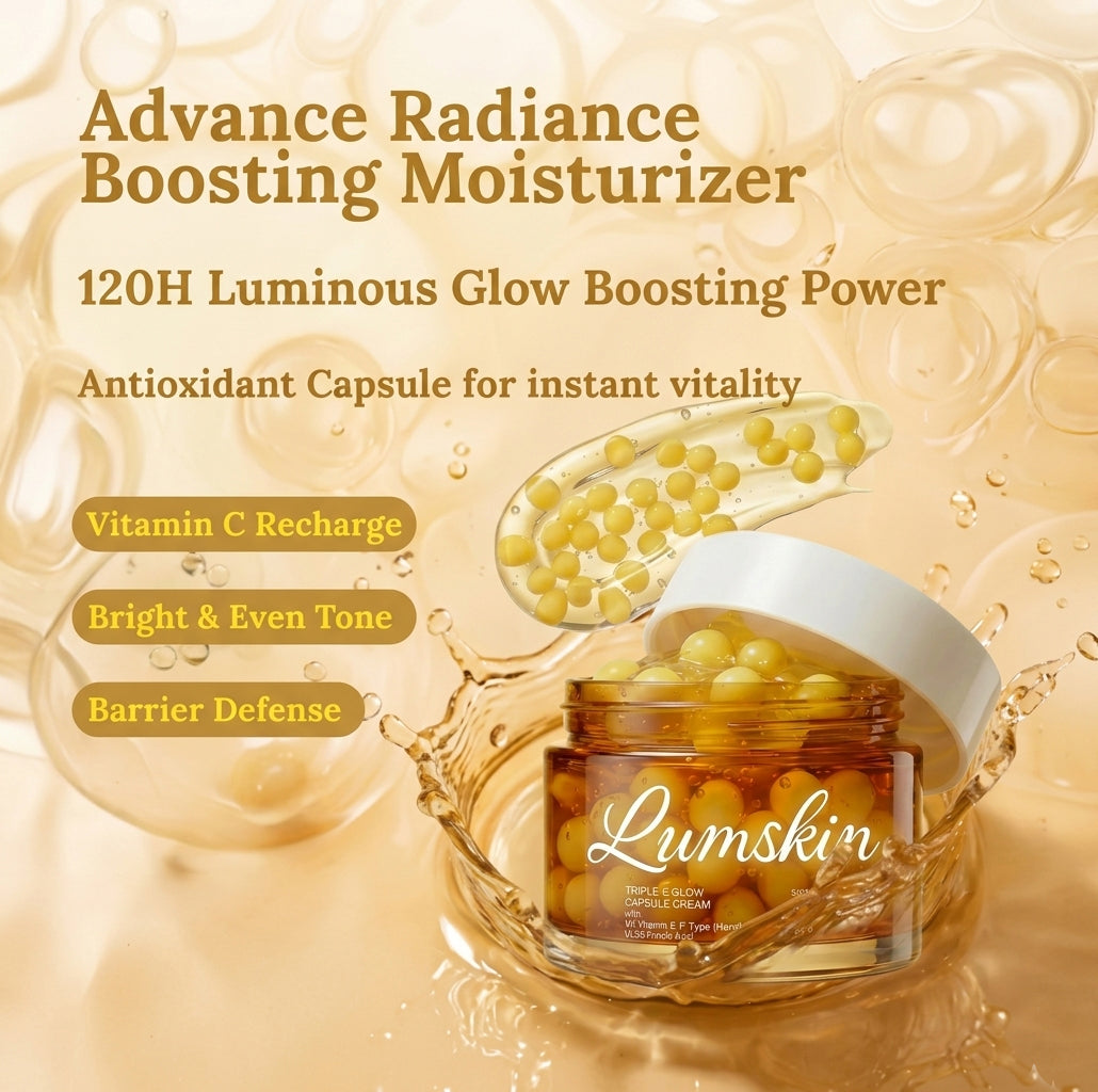 Triple C Glow Capsule Cream is an advanced brightening formula designed to refine skin tone, enhance texture, and boost natural radiance. Powered by three potent Vitamin C derivatives, this innovative capsule cream helps revive dull skin, reduce the appearance of pigmentation, and reveal a smoother, more luminous complexion.